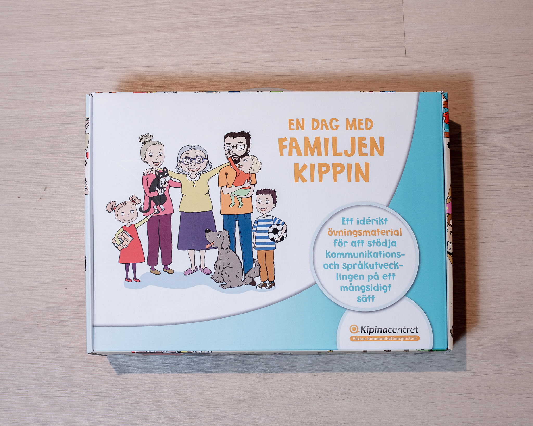 En dag med familjen Kippin -materialet bygger kring familjen Kippin och deras vardag. Genom roliga och fartfyllda lekar lär sig barnen vardagsord och kan öva både meningsuppbyggnad och berättande utan att det känns som träning. Materialet innehåller tretton aktiviteter som stödjer barnens språkutveckling, inlärning av nya ord och underlättar meningsuppbyggnad.